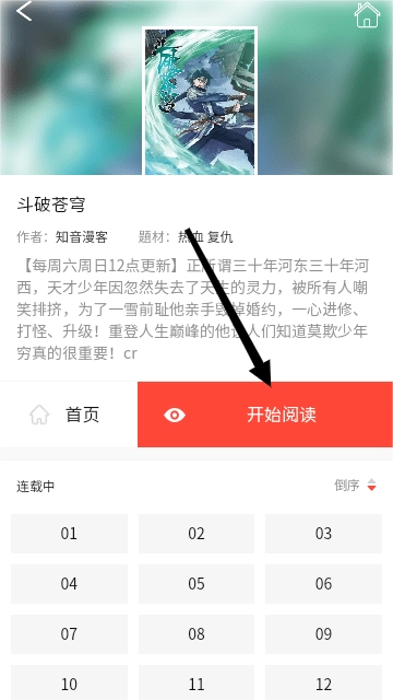 2、点击该漫画进入详情界面,然后点击如图所示的开始阅读即可开始看漫画