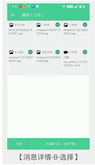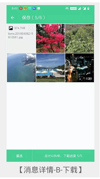 6、B手机收到消息后,需要点击消息进入【消息详情】,选择需要保存的数据来保存。