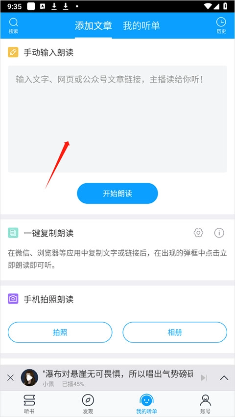 3、可以手动复制文字进行朗读