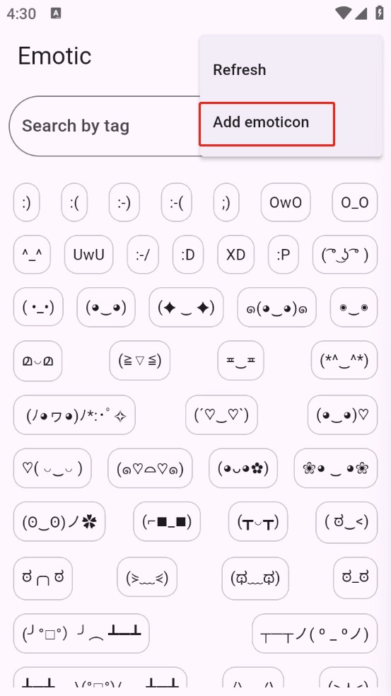 3、轻点右上角的三点标志,接着点击“add emoticon”。