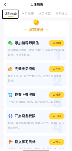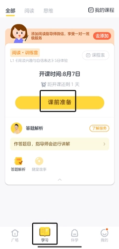 1、用户在学习页面中点击课前准备按钮;