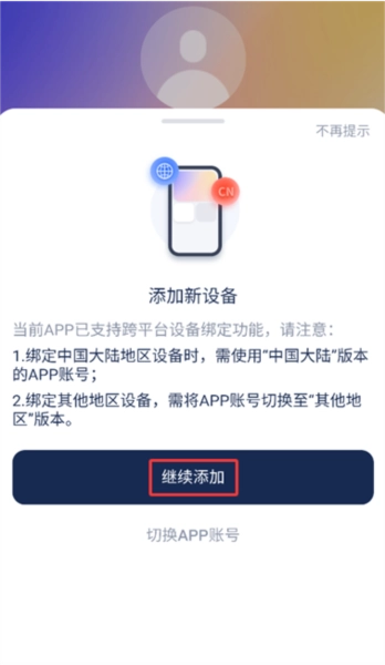 2、系统会自动检测设备固件版本与账号兼容性,确认无误后继续下一步操作。