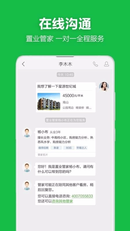 通过即时通讯,能够与房产经纪人实时互动聊天,从而了解到更为详尽的房源数据。
