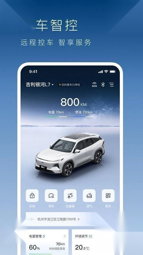 1. 借助应用获取吉利汽车的最新活动资讯、促销信息以及专属福利等。 2. 预先设定车内温度,使用户进入车辆时即刻能感受到舒适的环境。