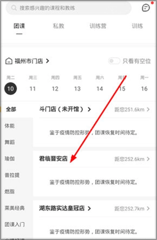 1、首先我们进入到超鹿运动的课程界面,在该界面找到一家健身房。