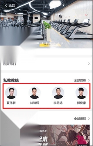 2、接着进入到健身房的详情界面,在该界面选择一位私教教练。