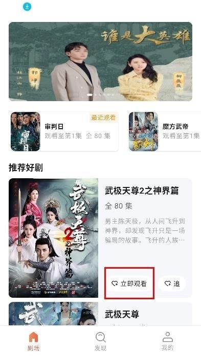 1. 打开并挑选一部你喜爱的短剧,然后点击“立即观看”。