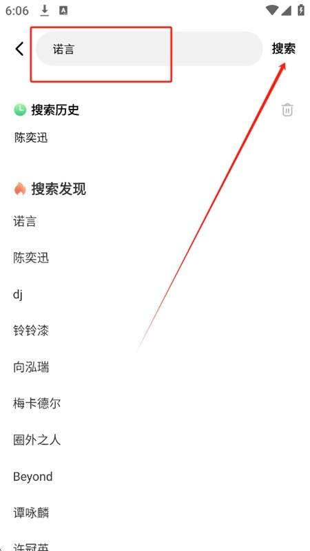 3、接着在搜索框内输入歌曲名称或者歌手名称来开展搜索。