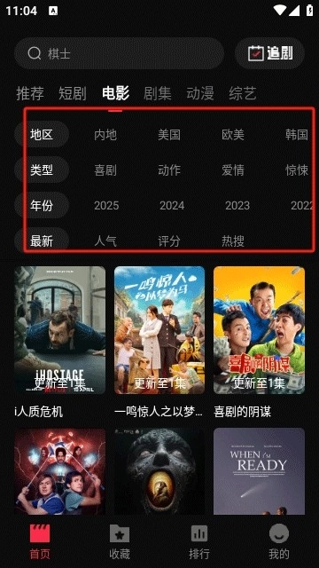 2、或者是在第二页通过条件筛选来了解同类型同风格的影视资源。
