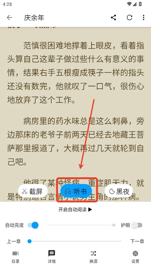 1.开始阅读一本小说,点击听书按钮。
