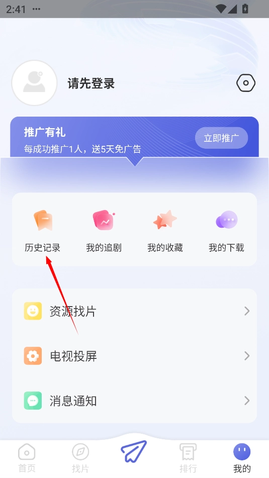 3、在打开的页面中点击“历史记录”既进入新的窗口