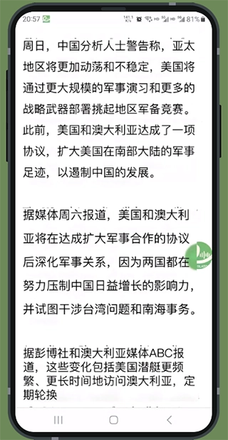 屏幕上若有外语文字需翻译,可借助悬浮按键。按下此按键,屏幕中的外语便会自动翻译成相应文字。若想恢复原状,拖动屏幕即可,实现按需翻译。