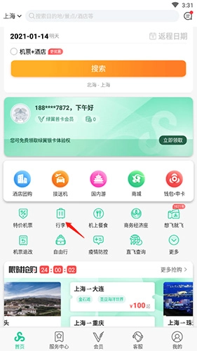 7、机票预订:国内、地区及国际,百余条航线任选,方便快捷更享专属优惠。