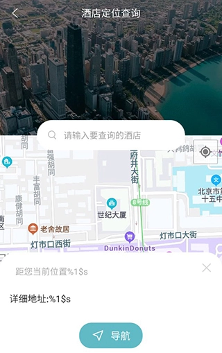 用户处于酒店页面时,点击页面下方的酒店定位查询,就能查看自己所住酒店的位置。