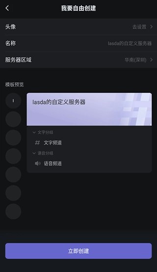 2、进入选择服务器模板界面后可以点击自由创建也可以选择其他合适的模板。