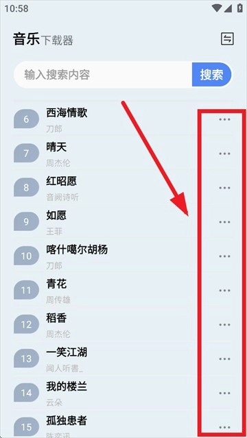 3、你还能通过一键搜索找到自己喜爱的歌曲,接着点击歌名后的三个点。