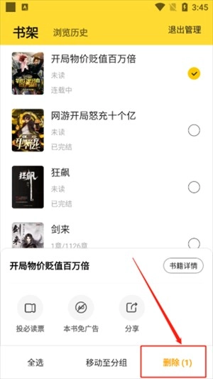 3、点击删除(可同时勾选多本)