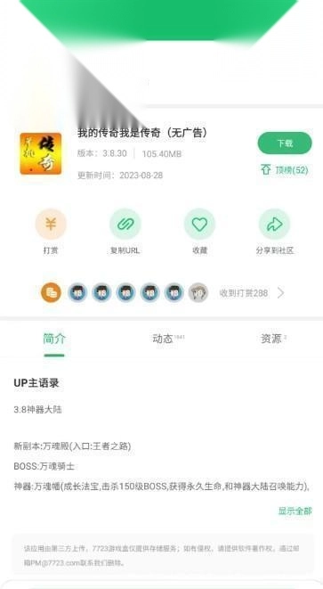 3、随后随意点击一款游戏,进而进入游戏资源的详情页面,点击UP主,便可进入UP主的个人界面。