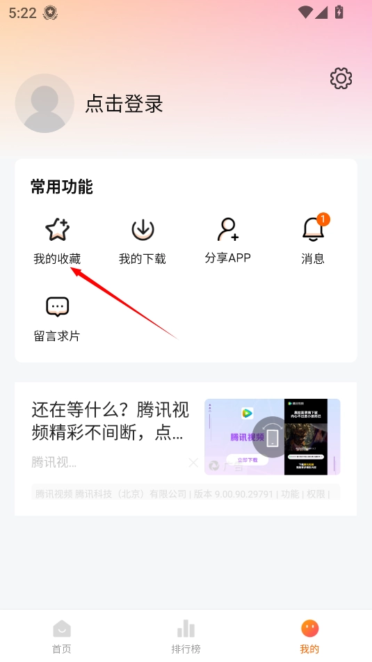 2、接着在这个界面中点击“我的收藏”即可查看自己收藏的节目