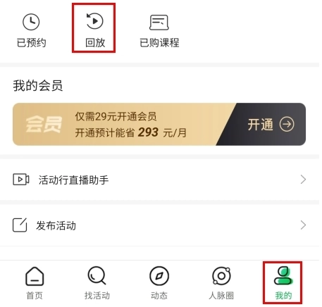 1、在我的页面中点击回放按钮;