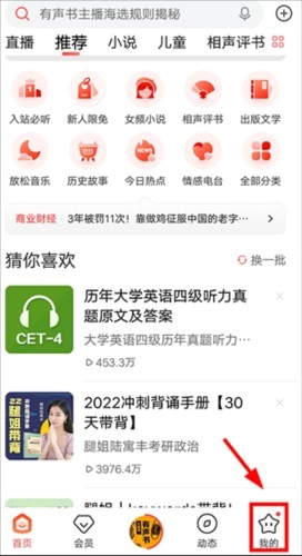 1、进入喜马拉雅首页后,点击右下角的【我的】;