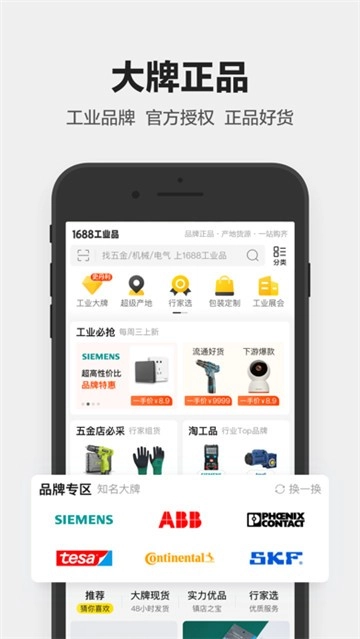 1688工业品平台,为用户汇聚海量工业优质货源。在这里,用户可批发各式各样的工业品,超百万商家任你挑选,货源丰富多样,充分满足不同用户的需求。不仅如此,平台还提供各类专业服务,助你轻松找到所需工业品。感兴趣的用户,快来体验吧!