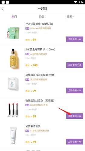 2、选择想要购买的商品,点击“立即参团”选项即可。