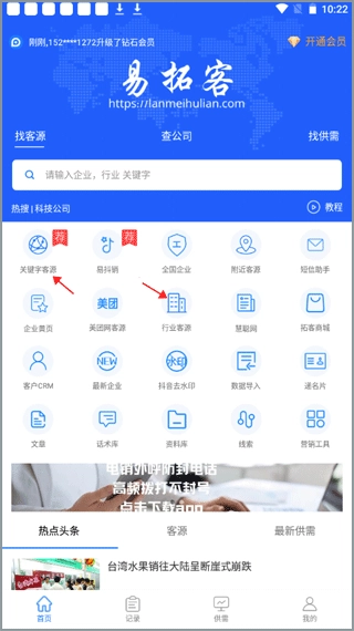 2、关键字客源能够涵盖各个行业,可随时查询所需行业的客源动态信息,让推广变得更为轻松。