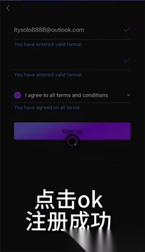 6.输入邮箱和密码并勾选同意选项后点击“sign up”