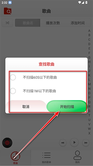 3、如下图所示扫描成功了,随机点击一个歌曲即可播放了