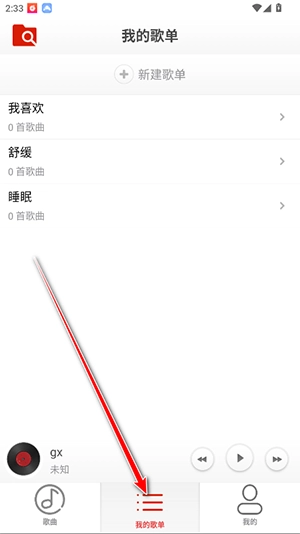 4、点击下方我的歌单