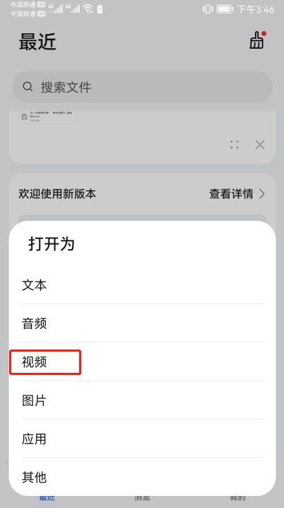 3、点击刚才传输的视频,打开为视频。