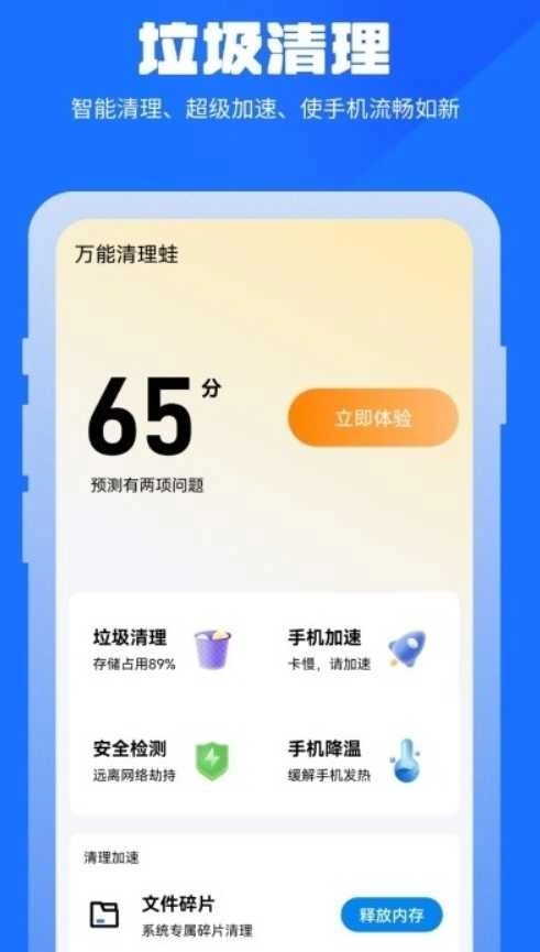 万能清理蛙,一款功能多样的手机清理神器。它具备垃圾清理、手机加速、安全监测等实用功能,操作便捷,能让手机运行如飞。不仅简单易懂,轻松上手,而且完全免费使用。欢迎感兴趣的朋友们前来体验!