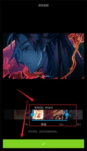6、拖动视频左右两侧的滑块,对视频进行裁剪操作,完成后点击【勾】确认,具体操作方式如图所示: