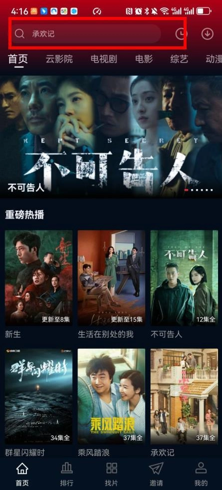 3、点击首页搜索框内可直接搜索观看你想要看的影视剧