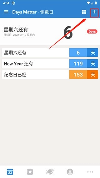 1. 开启倒数日应用,于首页轻点右上角的“+”按钮。