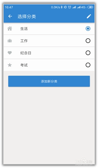 · 系统预设三种分类,分别为纪念日、工作、生活,同时支持用户自定义更多分类。