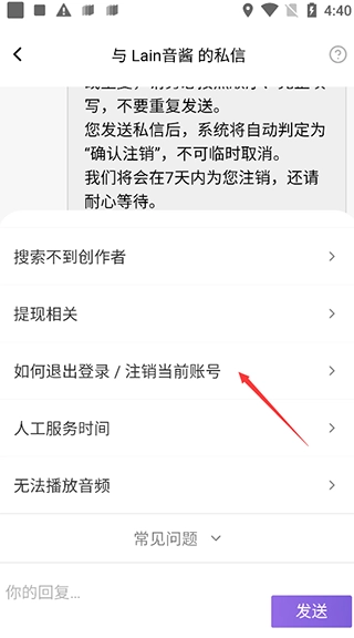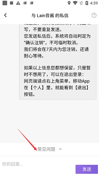 3、接下来便可以在“常见问题”里面找到如何退出登录/注销当前账号的方法。