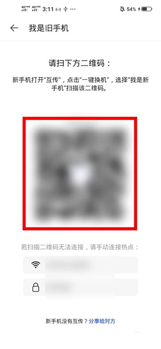 10、屏幕上会出现一个扫描框,将手机的摄像头对准上面旧手机屏幕上的二维码进行扫描,旧手机上面的数据就会一键转移到新手机。