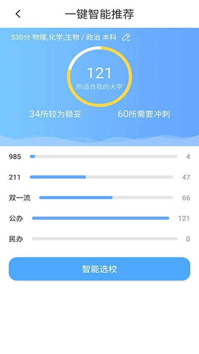 4、点击【智能选校】,可以查看更详细的推荐院校;