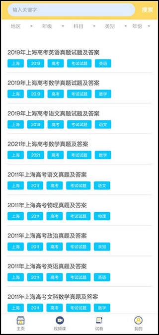 3、试卷模块这里可以进行模拟考试,学生可以自由挑选地区、年纪、科目、类别等等;