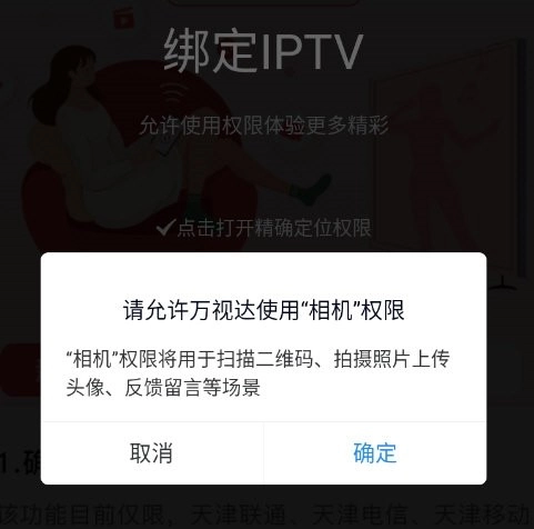 1、运行万视达后首先设置权限,需要用到精准定位权限和摄像头权限