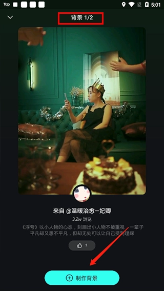4、不仅支持自行制作背景,还能在上分界面看到目前该音乐提供了2个视频背景。
