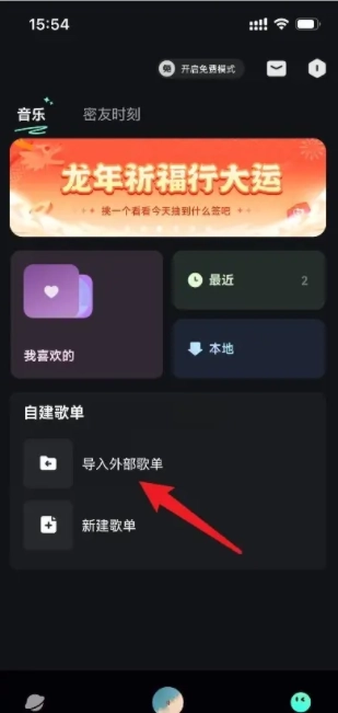 1、第一步,打开波点音乐,点击底部的小人图标按钮。 2、在“我的”页面,点击导入外部歌单的图标区域。