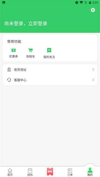 4、点击“我的”,完成账号登录或注册,便能使用查看订单、修改收货地址等功能。这是一个为商家和消费者提供便利的生鲜购物平台。