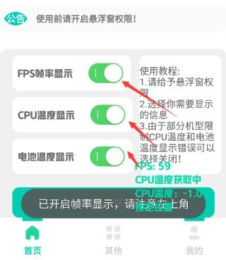 4、不过,因部分机型存在限制,导致CPU温度和电池温度显示错误,这种情况下可选择关闭该显示功能。