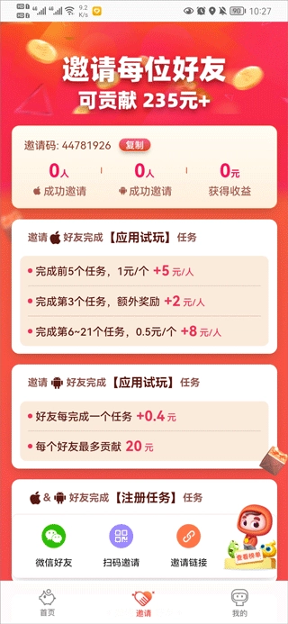 7、另外在邀请界面中用户通过邀请好友也可以获取一定的奖励