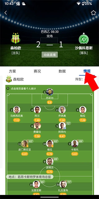 3、当进入实时界面之后,只需点击动画直播,就能收看到当前正在进行的赛事直播画面。