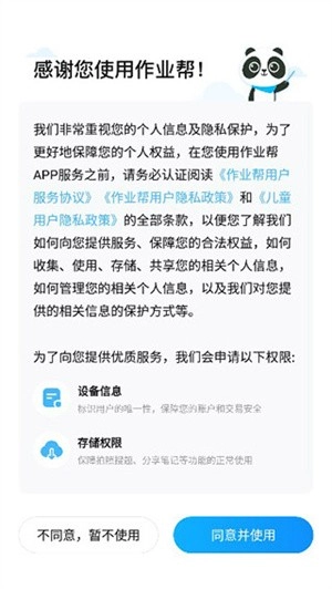 1、安装本站提供的作业帮软件,进入软件之后需要同意用户协议;