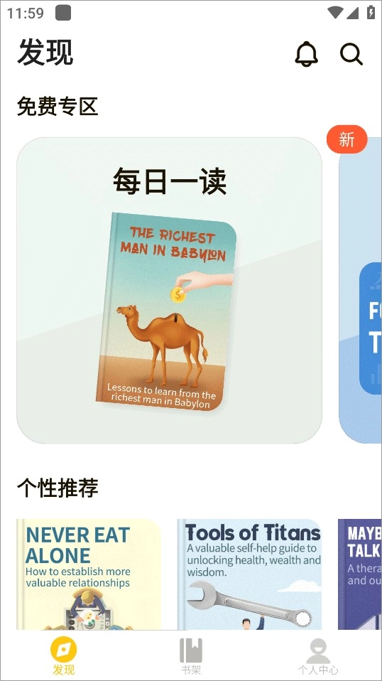 1、首页免费专区和个性化推荐帮助用户找到自己感兴趣的书籍
